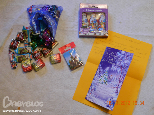 сладости ))) магнит, открытка новогодняя и очень тёплое, нежное письмо )))