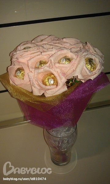 Оцените пожалуйста мой самый первый букет. Никогда раньше этим не занималась, а тут нужно было что-то необычное и срочно. В материалах была ограничена, поэтому только один цвет. Скажите, его вообще можно подарить? или может еще можно что-то исправить?