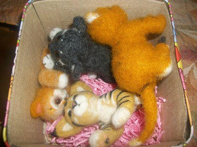 Фелтинг (валяние шерсти)Волшебная коробочка в которой живут маленькие, пушистые котята.