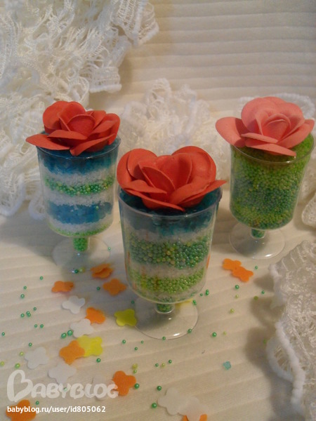 Наполнение морская соль крупнокристаллическая, белая и цветная, жемчуг для ванны. Верх мыльные розы.