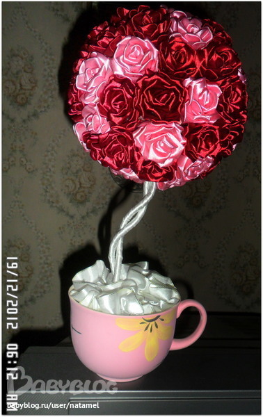 Доброе время суток. У меня появился еще один топиарчик, сделанный уже на заказ. Будет подарен на годовщину свадьбы. Принимаю любую критику))