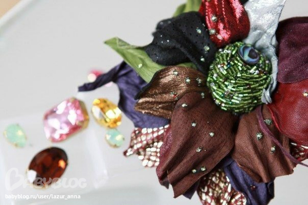 Брошь с серединкой из натуральных камней.
