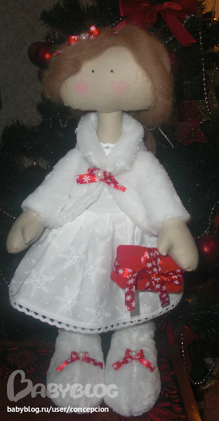 Ульяна, спасибо! Думала этой кукле трессы пришить, а их не хватило, слишком большая получилась. Попробую следующей сделать))