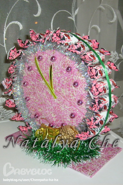 Мне очень понравились часики. Сама хотела попробовать сделать, но нигде не смогла найти круглую коробку конфет