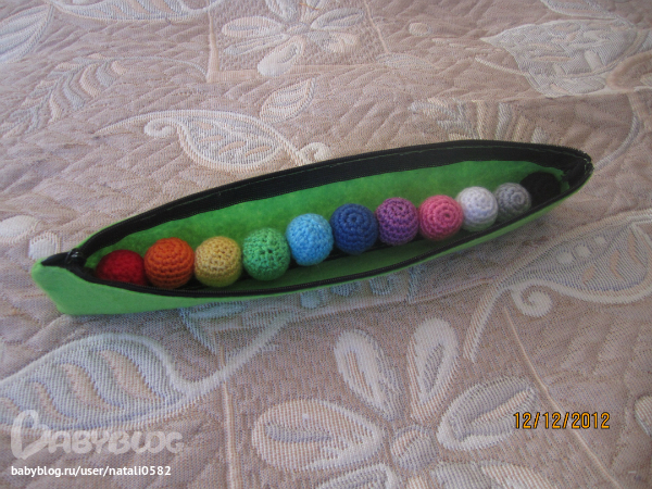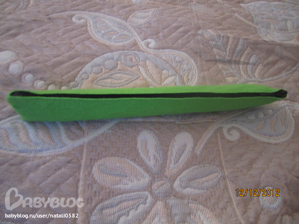 Более похож на лодочку, чем на стручок, а все по причине такой ширины отрезков фетра, которые продаются - не было запаса вокруг молнии.