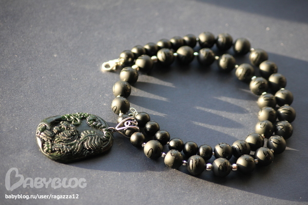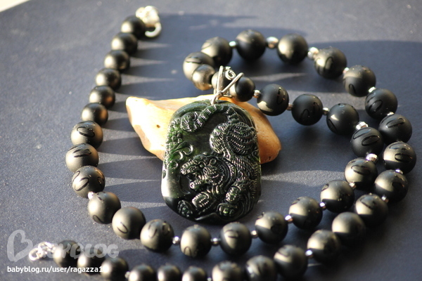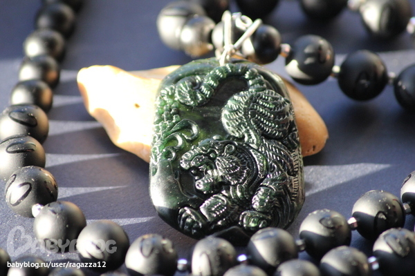 Бижутерия для слингомам. Слингобусы. Грызунки.Свинство с моей стороны,но только сегодня сделала фотографии этого амулета. обратите внимание на кулон.Это НАСТОЯЩИЙ старый нефрит.Невероятная резьба по камню!!!!Кулон черный,но когда на него попадает яркий свет,то видно,что он темно зеленый.На камне изображение Тигра,готовящегося к прыжку.
