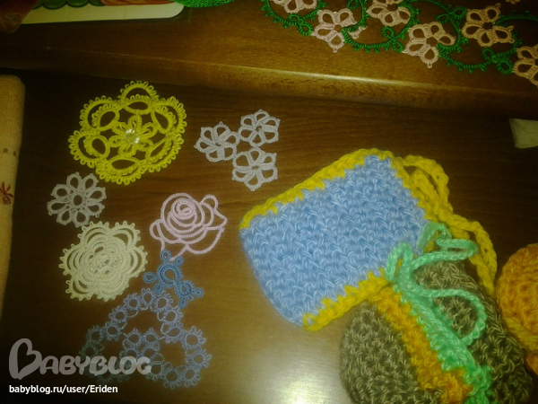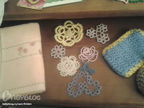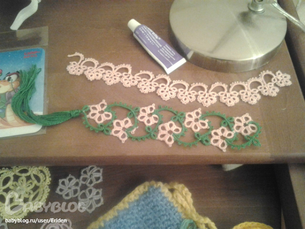 А это Чудо- это кружева и закладка в технике Фриволите от Светланы. Куча красивостей, Света настоящая мастерица! Еще в посылочке было полотенечко для Тимы и, вроде, что-то съедобное, кажется, шоколадка. Мне очень стыдно, съедобности сфотографировать не успела, были съедены.