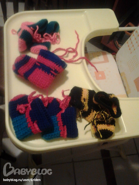 Это чудесные носочки от Оли же. Фото не передает всю красоту, поэтому фото на ножках ниже. Хочу сказать, что носочки очень вовремя и в тему, ибо лапищи сынищщи выросли немеряно и носки все стали малы. Тем более что эти он не может снять. Расцветки абсолютно чумовые, подруги оценили. Сына оценил тоже. На фото они уже чуток пожеваны, хотя по ним не видно.