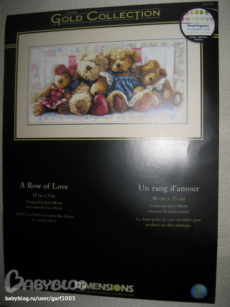 Наверное, все рукодельницы хомячки, кто-то больше, кто меньше, но все делают запасы) Вот мой ненасытный хомяк не давал мне покоя по-поводу одного вышивального наборчика. И это наборчик, всем известные мишки от Dimensions "A Row of Love". Я за ними несколько лет охотилась и все не могла решится подбор или набор. Потом немножко остыла и попробовала переключится на выбор каких других медвежат, но... Не тут то было :)) Мой хомяк начал бунтовать и я сдалась . Заказала и вот они у меня. Мои милые, такие холосенькие:))) Комплектация, правда уже китайская, но мне в ней очень по душе пришелся органайрзер- удобный.