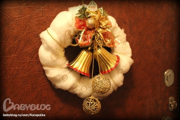 Взялась украшать квартиру.Начала с входной двери. Теперь на ней висит вот такой новогодний оберег. Для приманивания праздничного настроения и добрых гостей))