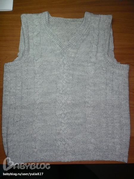 класс))) очень красиво) я малышу тоже сейчас жилетку вяжу - удобней, чем в кофте с рукавами. У вас схемка есть? поделитесь) коса в центре очень симпатичная)