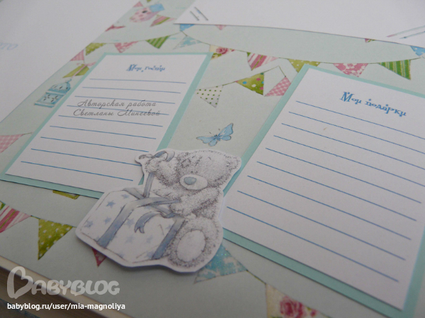 Ой какая красота!!!!!!!пошла тоже с почты забирать своих мишек и начну делать альбом для дочи,приму за вдохновение Ваш,если позволите
