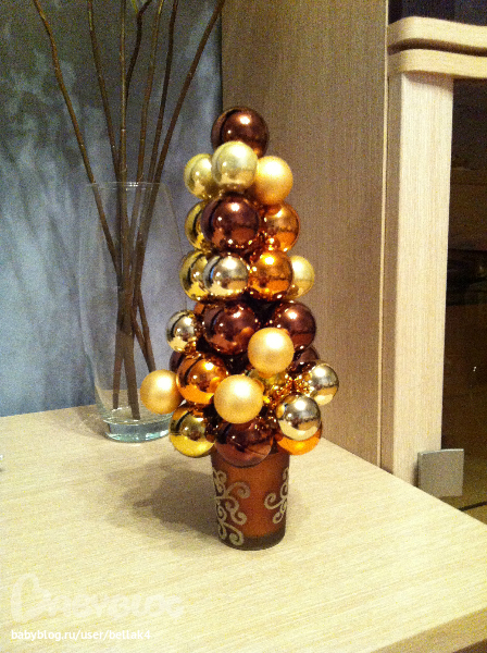 Вот все видно в процессе, берем любой стаканчик, подсвечник, или ведерко или горшок, запениваем монтажной пеной, в него вставляем палочку для СУШи) и к ней приклеиваем шарики ярусами, открывающиеся в процессе дырочки заполняем мелкими шариками или бантика и всем что под рукой) и Вуа ля........все готово)