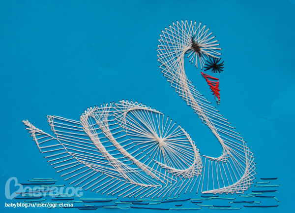 купите набор бархатной бумаги, её клеить на картон и вышивать-будет шедеврально! лебедЬ обалденный! Дочке передайте, что она очень талантливая девочка! Мои племяхи не интересуются и иголку держат в руках только пуговку пришить.