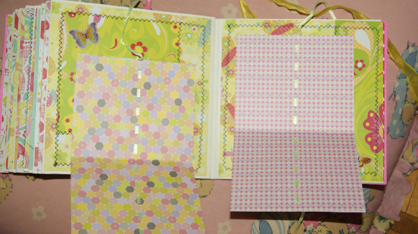 очень приятный альбомчик)) душевный) Мне трудно с такой яркой бумагой, она меня поглощает))) а вы как рыбка в воде) особенно для первого альбома)