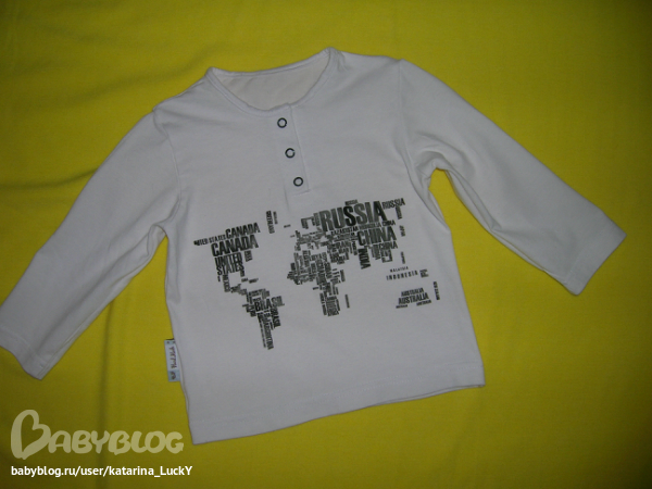 Футболка с длинными рукавами и застежкой "Регби": Ottobre 2012-01 мод.20. Сшита из плотной кулирки, декорирована интересным трансфером. Не стала перегружать модель карманом на рукаве, как это заявлено в журнале. Из ярких элементов декора помимо трансфера - контрастные черные кнопочки-джерси в поддержание основной темы рисунка.