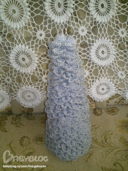 Получилось не совсем то, но позже я нашла схемы, попробовала вязать по ним и мне не совсем понравилось, елка gj ybv получается какая-то рыхлая, неаккуратная, а у меня плотненькая получилась.