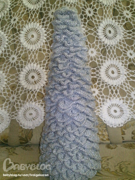 Вязание крючком (РАБОТЫ И СХЕМЫ)За четыре с небольшим вечера связалась у меня елочка. Хотела поучавствовать в конкурсе креативных елочек на работе, но где-то на середине поняла, что промахнулась с цветом, нужно было взять что угодно, только не серый. Распускается эта пряжа очень тяжело, выбрасывать жалко, решила закончить. Сынуле, кстати, она очень понравилась, он как ее увидел обрадовался очень, а вот я сомневаюсь стоит ли выставлять ее на конкурс или нет. Цвет все равно какой-то не совсем праздничный.