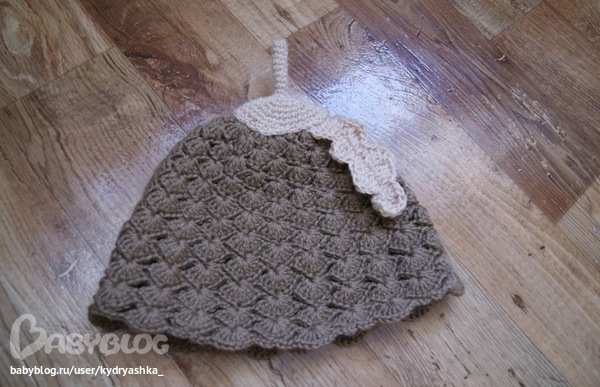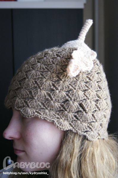 А если убрать лепесточек и немножко менее сделать черенок - получится шапочка грудничка))) я такой крестнику хочу связать)))