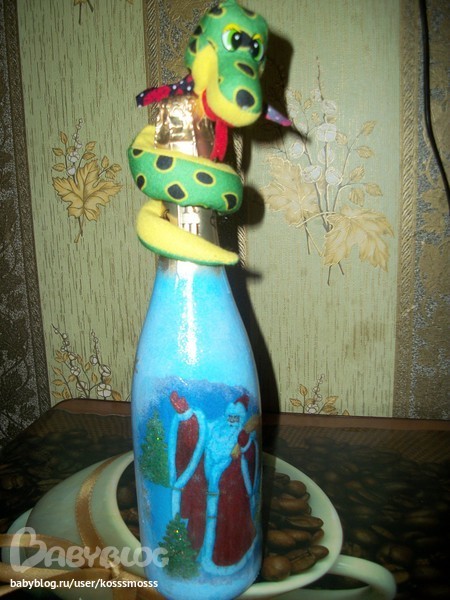 ДекупажВот такая в итоге бутылочка Новогоднего шампанского у меня получилась =)