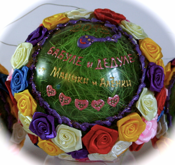 - розочки (на шарик диаметром 12 см у меня уходило 90-100 штук розочек диаметром 2 см. Покупала я по 2,5 руб\ штучка)