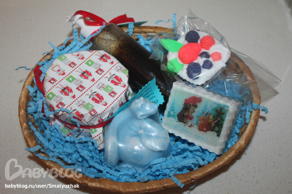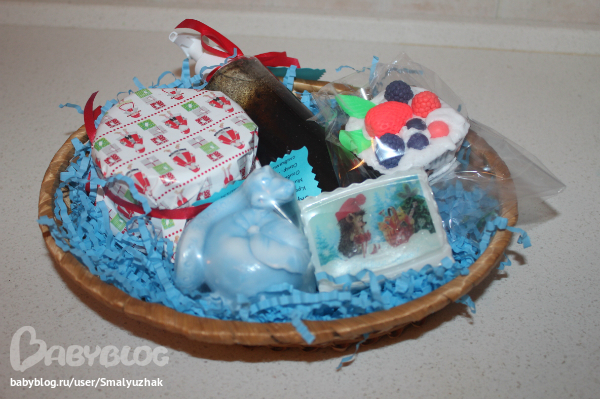 а, еще можно сделать маленькие шипящие шарики (гейзеры), или просто шипящую смесь(как для ванны) по маленьким пакетикам) только мне надо аромат какой нравится написать