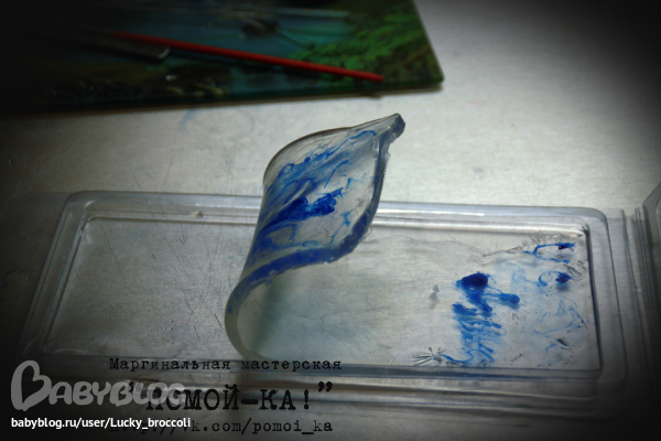 И еще немного основы - в пластиковый поддон. Окрашивать можно уже в поддоне, я использовала синий пигмент.