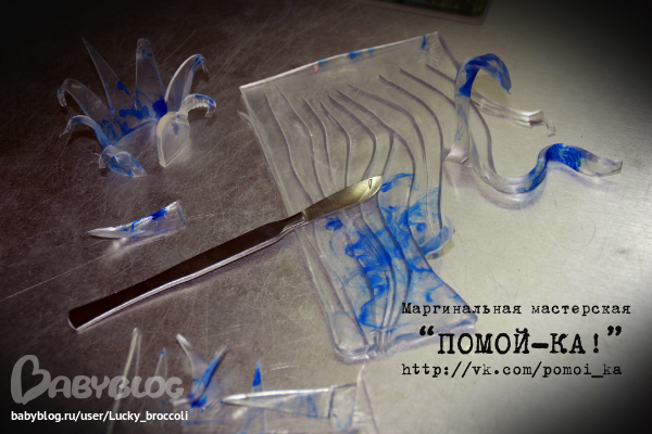 Теперь моя любимая часть. Тёплый пласт основы будет превращаться в щупальца. Для этого я использовала скальпель.