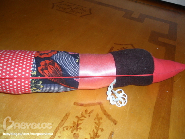Поселилась у нас вот такая змея Анфиса. Сшита из разных на ощупь лоскутков ткани.