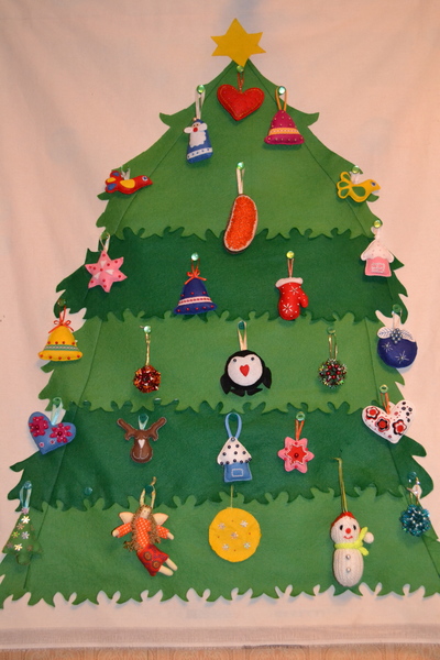 А такую елочку как у вас я на следующий год планирую, да так чтоб повешать елку 1 декабря, и каждый день по 1 игрушке чтоб вешал сын, и носок сделать для ежедневного сладкого сюрприза... Где-то на ББ читала, понравилась идея... Сейчас не поймет -мелкий еще..