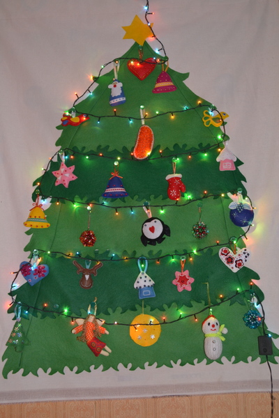Но обычная елка на стену никак не вешалась, пришлось сшить!