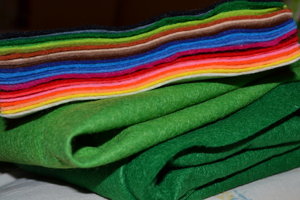 Сначала был фетр. Два вида зеленого для елки и 26 цветов для игрушек.