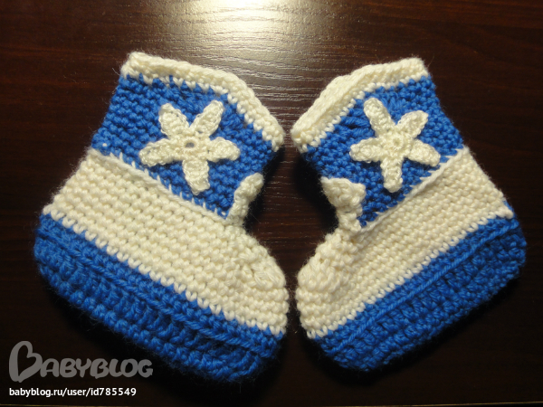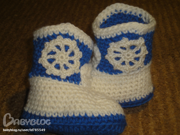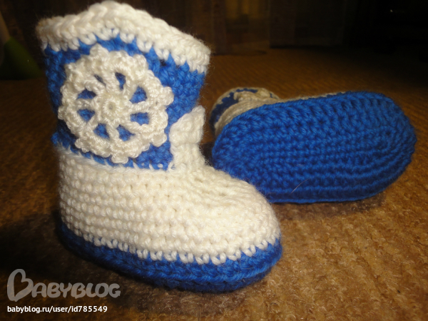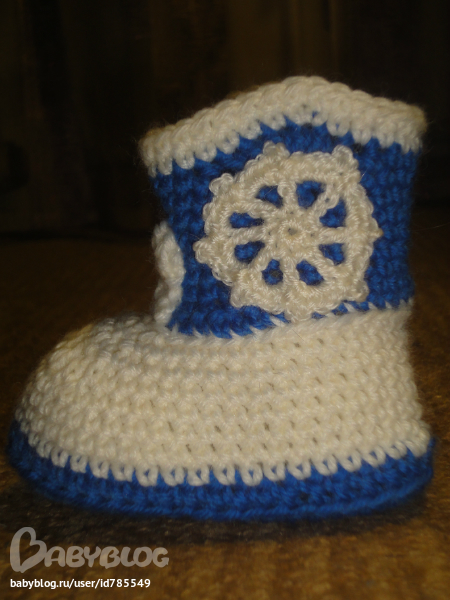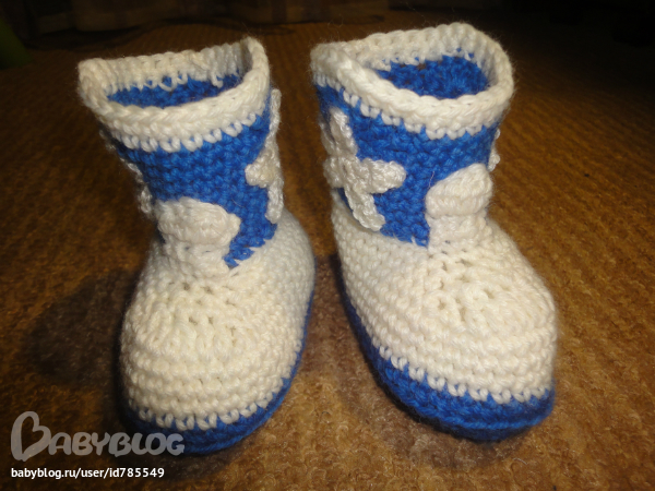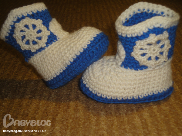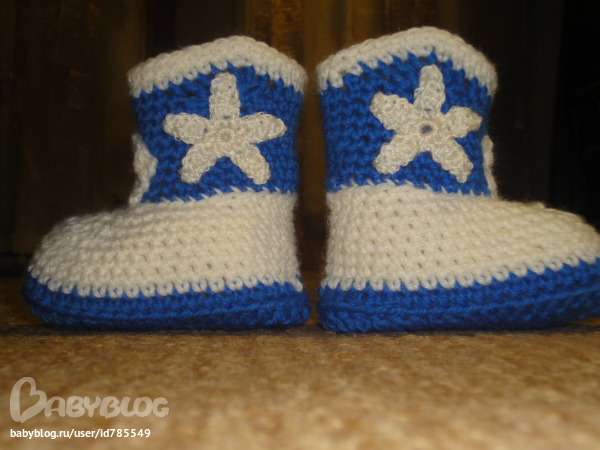 Я к вам с очередной своей работой крючком))) сынуле 9 мес, думаю скоро понадобится специальная обувка, поэтому пока в запасе есть месяц другой, решила осуществить свои задумки и утеплить ножки вязаными сапожками)))вязала по описанию ковбойских ботиночек, но я люблю изменять модельки и вносить что-то свое, поэтому решила добавить морскую звезду и штурвал(не знаю насколько получилось похоже). и вот у нас теперь есть правда не ковбойские, а морские сапожки)))