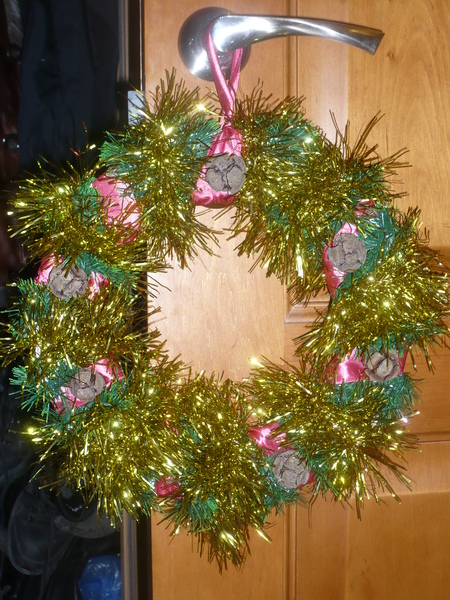 На бант ленточки не хватило... А про колокольчики - хорошая идея, но не видела как их делают.... Может смыл очку кинете?