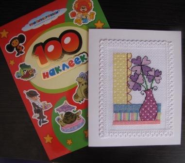 Златушка сейчас болеет, наклейки ее очень порадовали! А я в полном восторге от открытки - она вышита крестиком! В скором времени эта красота будет помещена в рамочку! Спасибо, Женя, очень приятно!!!