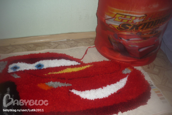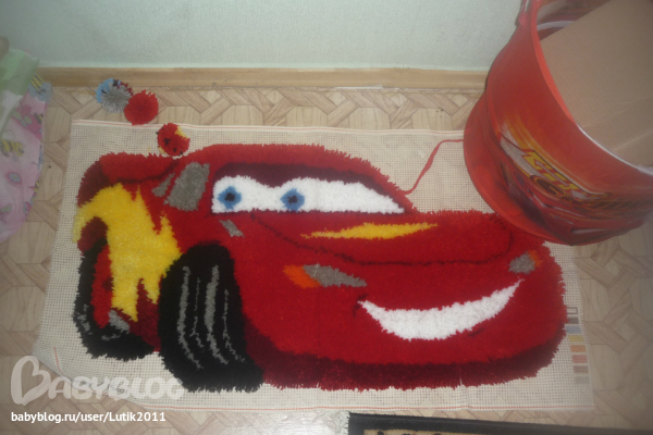 Ковровая техникану наконец-то общими силами, мы закончили коврик для сына! купила его ровно год назад! делался около полу-года... делали: я, мой муж, и его племяшка! вот результат! пока не обшит, т.к. пока не помнимаю как это сделать ))