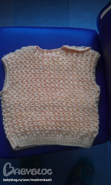 маша в Рукоделие 13 лет жилетка для внучки сама вспицами не вяжу, а вот бабушка связала нам такую прекрасную и тепленькую жилетку для прогулок! в реаеле она яркая,желкто-оранжевая Посмотрите еще 20 записей на эту тему Отменить Ответить Оксана так красиво 27.12.2012 Ответить маша спасибо:) 27.12.2012 Ответить Елена Ваяс красивая,тепленькая 27.12.2012 Ответить маша да,спасибо:) 27.12.2012 Ответить Анюта очень красиво! не узнаете у мамы как узор называется? 27.12.2012 Ответить маша если не забуду, напишу!) 27.12.2012 Ответить Татьяна Очень узор красивый-необычный! 27.12.2012 Ответить маша и мне нравится:) мама в журнале его нашла старом 27.12.2012 Ответить Катерина действительно - необычный. сижу и вглядываюсь - не могу понять что это за узор такой. 27.12.2012 Ответить Как украсить валенки для дочки? Мой первый обмен рукоделками!!! Чаты Беременных Выберите чат: Январята-2026 Февралята-2026 Мартята-2026 Апрелята-2026 Майчата-2026 Июнята-2026 Июлята-2026 Августята-2026