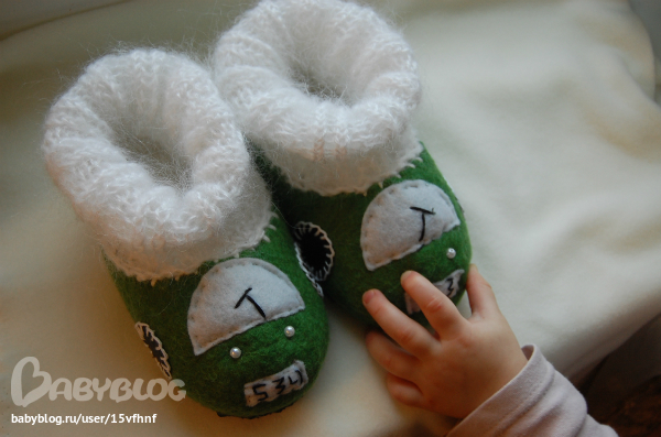 Фелтинг (валяние шерсти)Получила сегодня чудесный подарок от нашей Валяльщицы (с большой буквы) Надежды! Они такие хорошенькие, оригинальные, очень мальчуковые, и очень тёплые внутри, как раз подходят к нашему мелкому хулигану! Сваляны очень добротно, сделаны с большой любовью! Спасибо тебе, Надюша, за такой прекрасный новгодний подарок! Ваню, к сожалению, не смогла в них сфоткать, он постоянно бегает, и на месте не стоит. )))