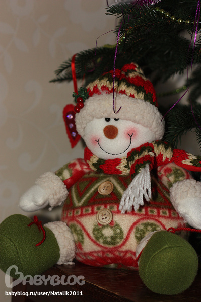 А под елкой живет снеговик, правда он там очень редко сидит, в основном его Ксения носит на ручках