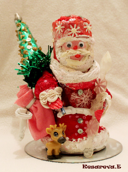 Посох - от старый люстры советского образца. Олень из киндера. Елка, бумажный колпачек