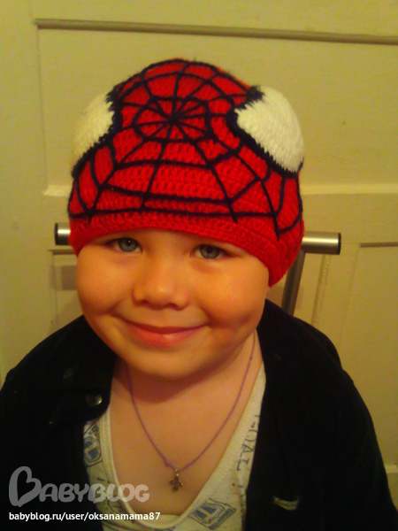 )))) У меня заказали эту шапейку для мальчика Ванечки, он тоже ярый поклонник спайдер мэна)))) Вот мальчишки))))