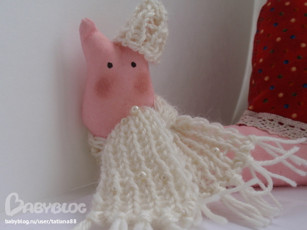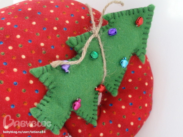 Панцирь - американский хлопок, тушка - ткань ещё советских времен (досталась от бабушки-швеи), елочка из фетра, бубенцы звенят :))) В шапочке и шарфике! На шарфике ввязаные бусинки-жемчужинки! Новогодняя красотка! :)))