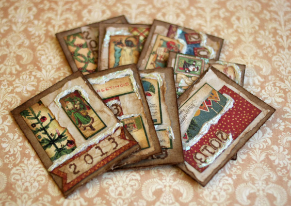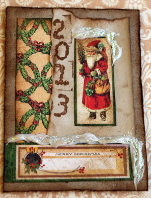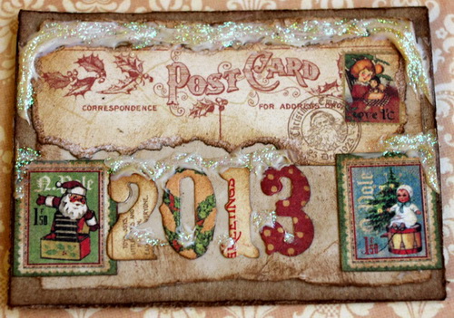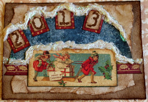 Еще из материалов: крафт-бумага плотностью 200 г/м, состаренные в кофе странички, штампики, дистресс чернила цвета "Винтажное фото" Ну в одном месте не удержалась - вырубку сделала новыми ножами)) Для снега использовала текстурную пасту Сонет и покрыла глиттером.