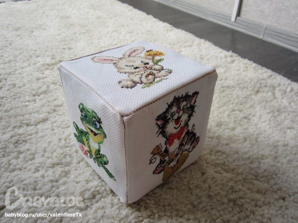Игрушка-кубик для Ариши, вышивки тоже 2011 г, но идею их оформления подчепнула тут -большое спасибо!