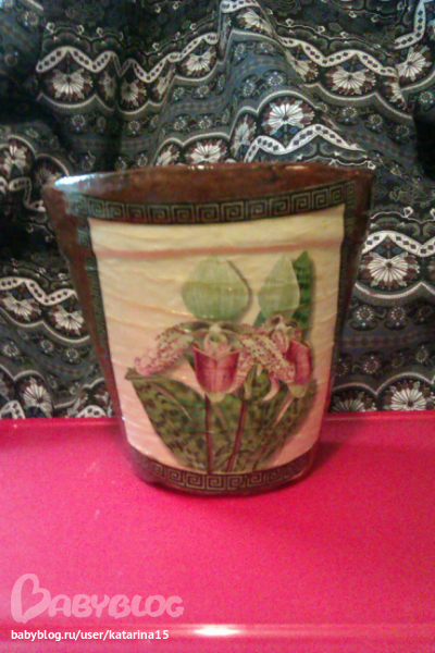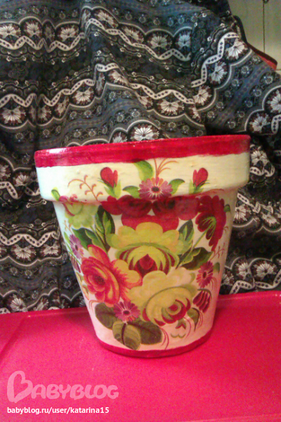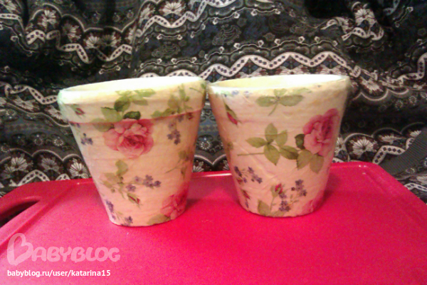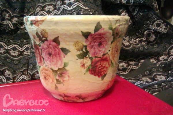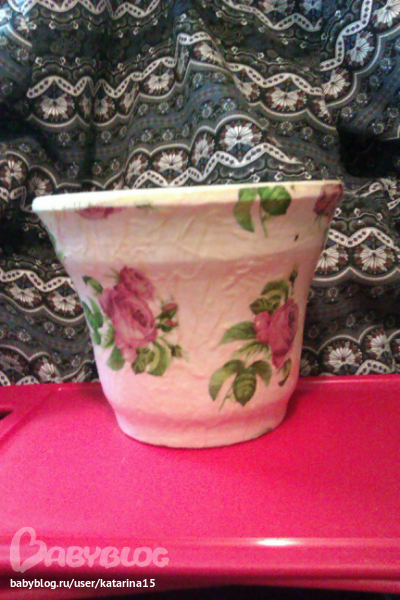 декупажист из меня пока что криворукий - все какие можно было сделать складки я сделала, шкурить было некогда поскольку горшки уже уехали, а лак еще недо конца высох, началаяэто горшкомученме в понедельник , во вторник покрывала внешнюю часть, а в среду внутреннюю, а лак сохнет полностью трое суток, так что приедут мои горшочки к маме на новый год и первым делом будут досушиваться и проветриваться.