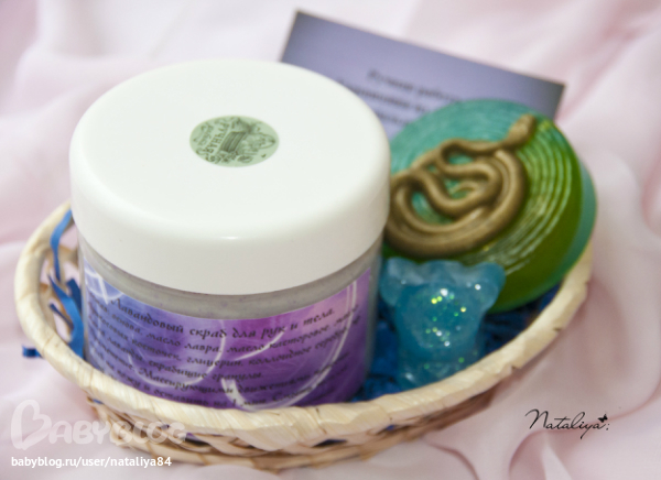В этом наборе: скрабик, мыло с люфой и мыло календула с липой.