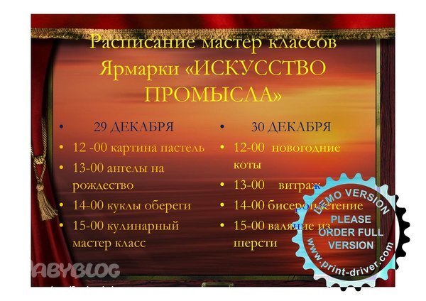 Юлия в Рукоделие 13 лет Приглашаю Вас на новогоднюю ярмарку! Рукодельные выставки, встречи рукодельниц в реале, отчеты с МК (не платных) Посмотрите еще 20 записей на эту тему Отменить Ответить Юлёчик Юль приветик!я хочууу))) там только мылко или нет?) 28.12.2012 Ответить Юлия Привет:) не, там много всего будет и МК интересные 28.12.2012 Ответить Юлёчик ага...прикольно) спасибки за расписание) я его не нашла)а ты там выставляешься? как узнала про ярмарку? я б может тоже подготовилась но все пропустила( 29.12.2012 Ответить Юлия http://vk.com/groups#/event46293458 29.12.2012 Ответить Девочки, хочу пригласить вас Маленький отчет о выставке Чаты Беременных Выберите чат: Январята-2026 Февралята-2026 Мартята-2026 Апрелята-2026 Майчата-2026 Июнята-2026 Июлята-2026 Августята-2026