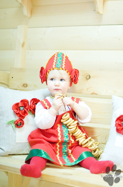 Дочка дома категорически не хотела мерить этот костюм, а на фото сессии села с баранками и сидела себе спокойно.