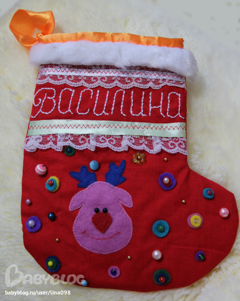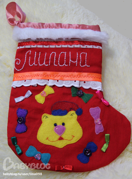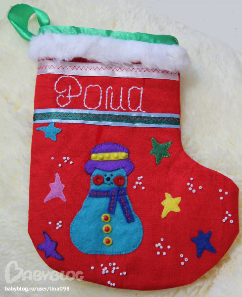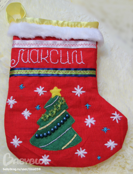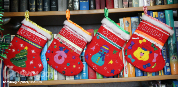 Вот, что успела сделать к новогоднему празднику для нашего семейства-именные сапожки для подарочков: