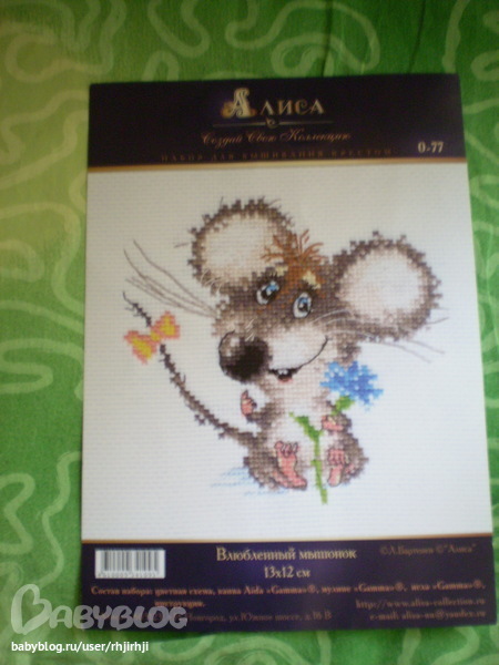 4. Влюблённый мышонок. Схема цветная, ниток точно хватит ещё на одну вышивку.